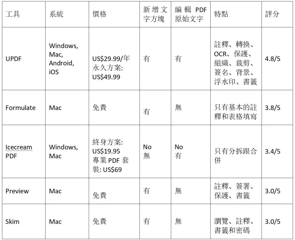 第3部分 UPDF和4個Mac開源PDF編輯器的比較