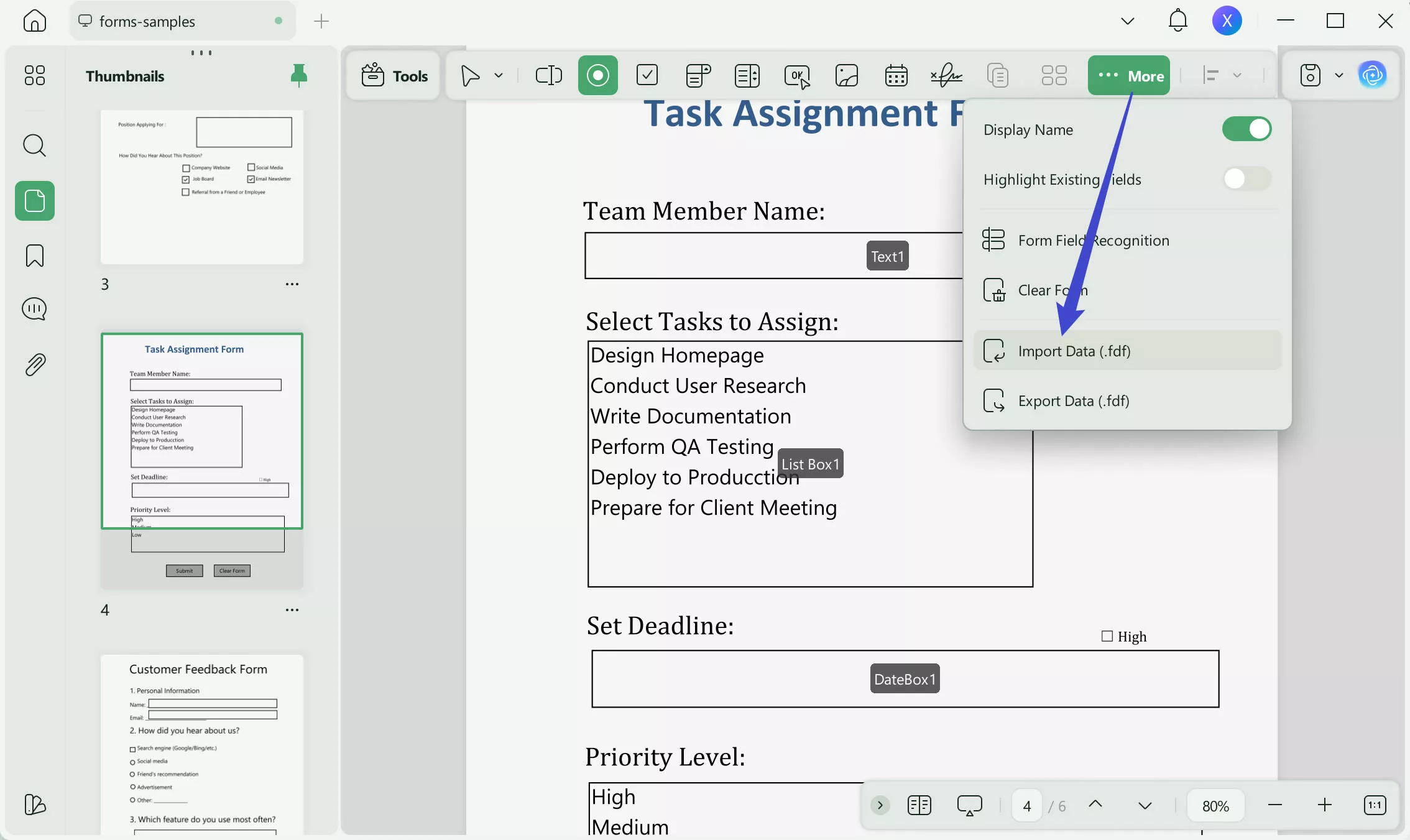Now you know how to import data from an FDF file into a PDF form. How do you fill in a form and export the FDF data in the first place though?