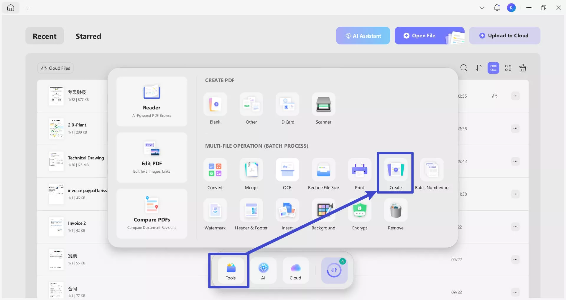 - Access Batch Processing: Navigate to the "Create" option in "Tools".