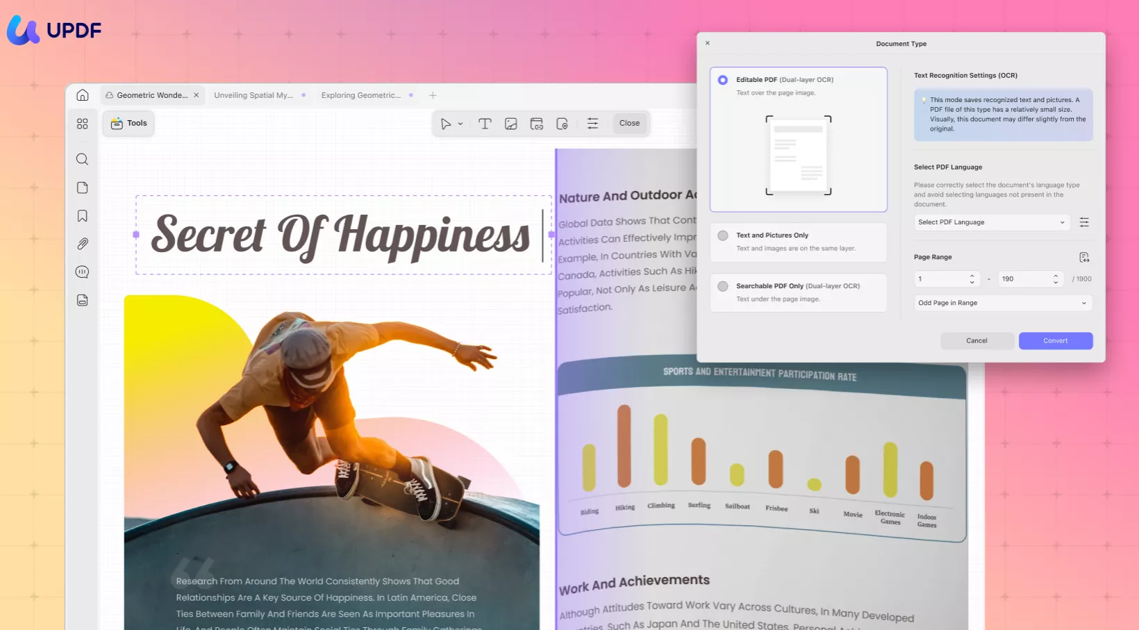 - OCR PDF: The advanced OCR feature in UPDF can recognize text in scanned PDFs across 38 languages, making your documents editable and searchable.
