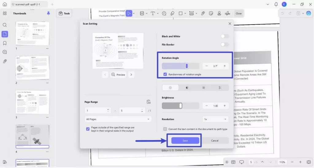 Step 3. Now, you can drag the "Rotation Angle" slider to straighten the crooked scanned document. Once adjusted, tap "Save" to store the corrected document on your device.